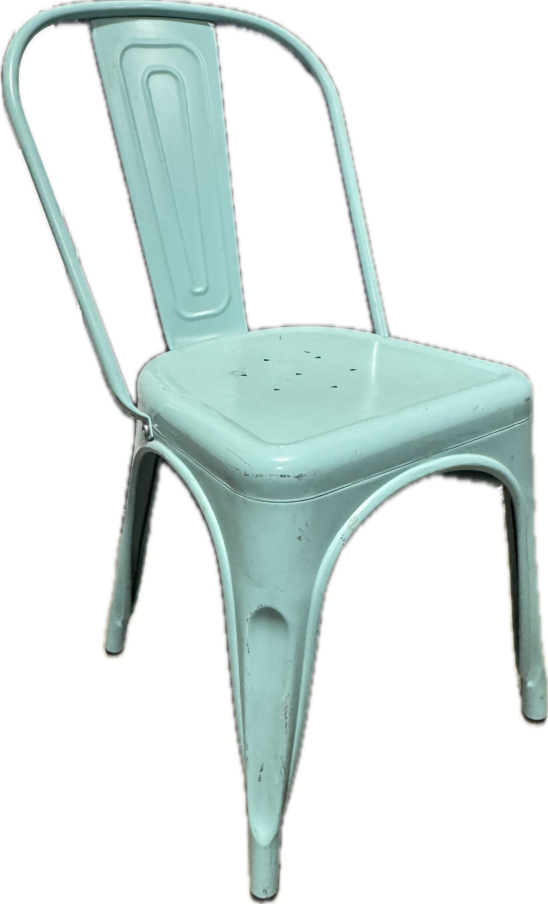Aqua stackable bistro metal chair.
