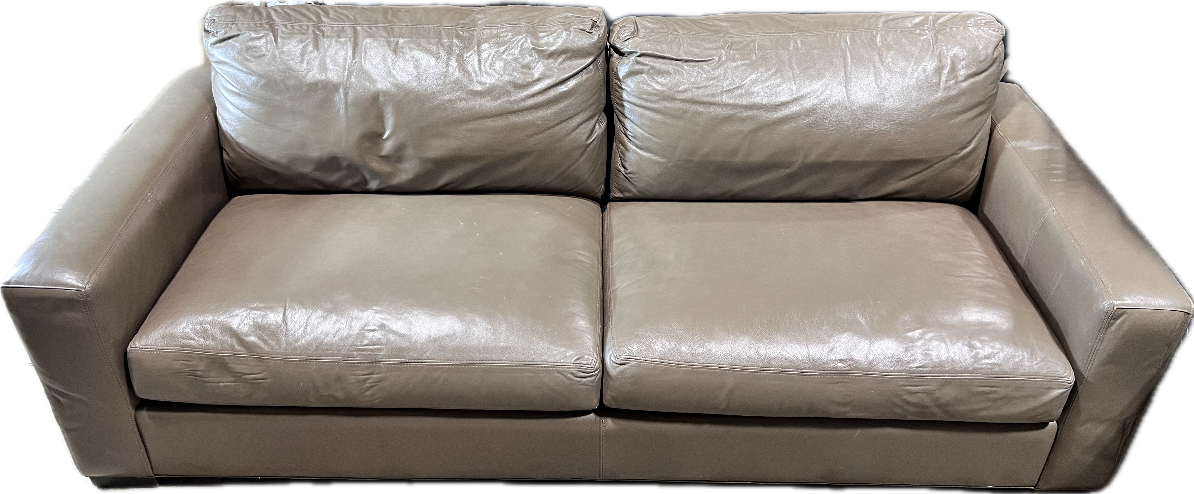 Worn leather basil green sofa from Room and Board.