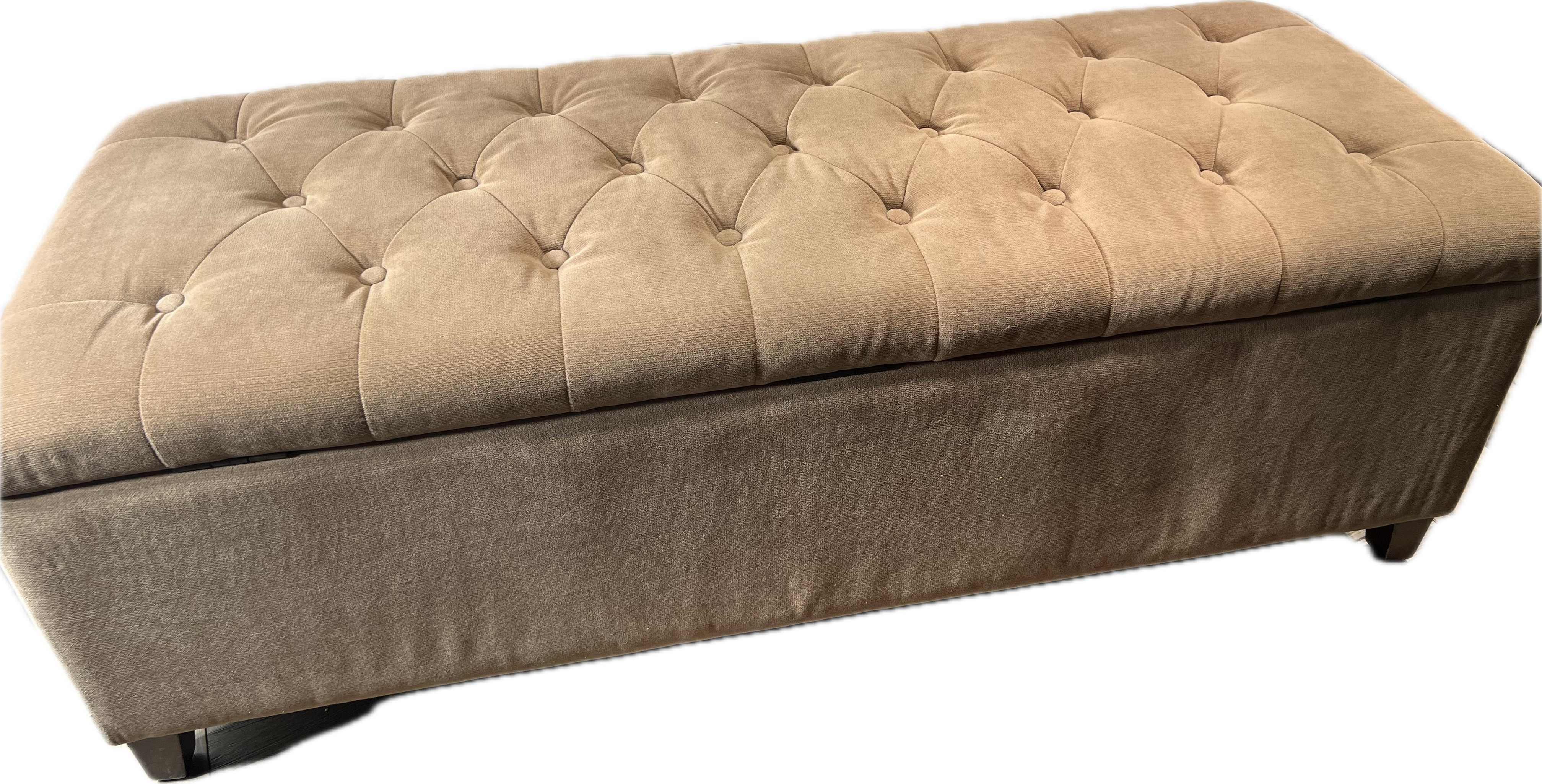 Beige tufted button storage bench.