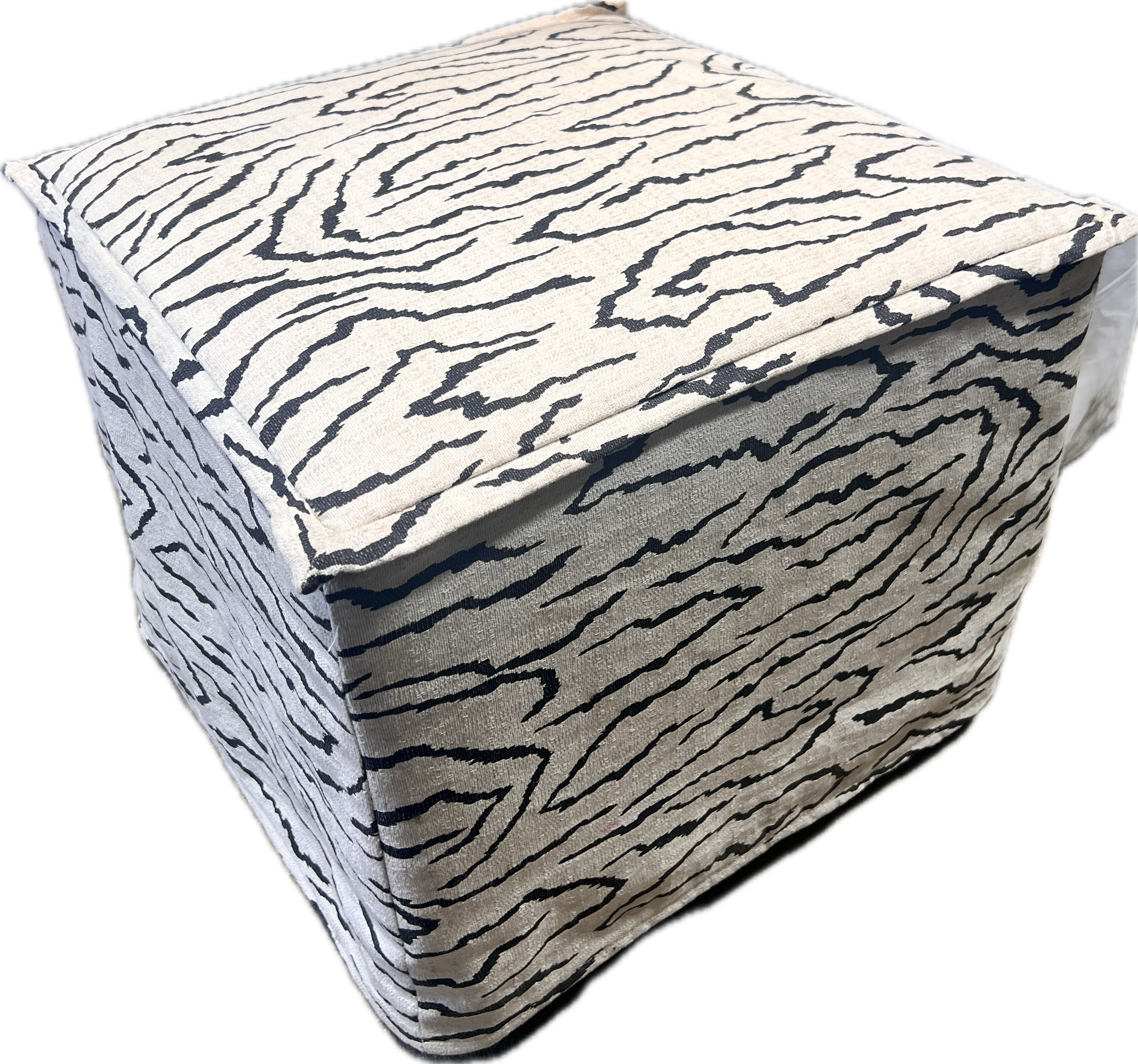 Square black and white zebra print ottoman.