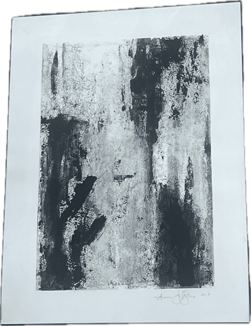 Black and white textured abstract print in white matte.