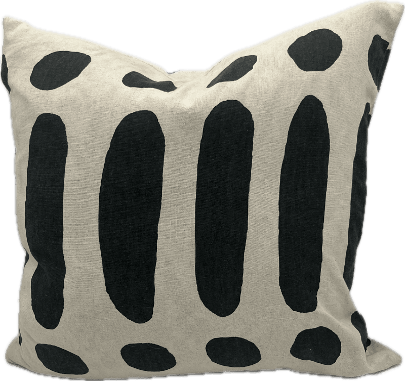 Bold black brushstroke pattern on a cream background pillow.
