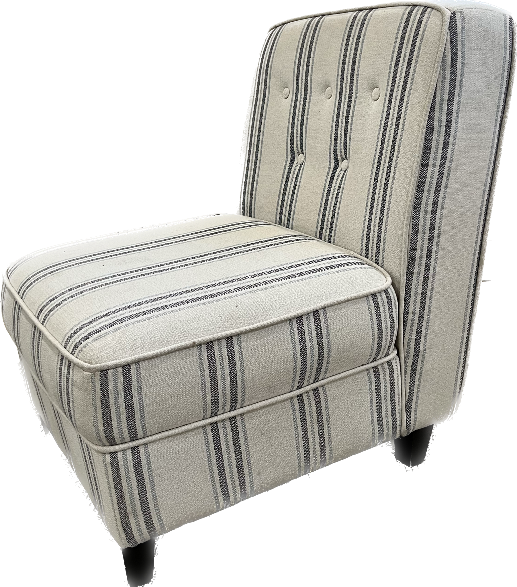 Blue and white striped slipper chair with matching pillow.