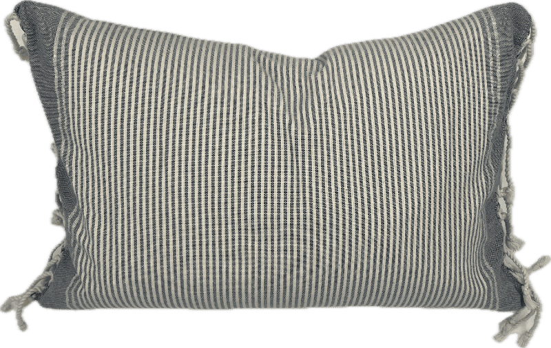 Blue and white striped rectangular lumbar pillow with metallic silver accents.