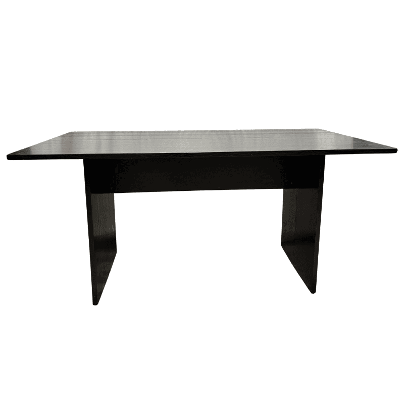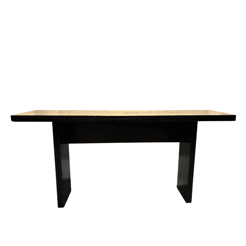 Rectangular black and natural wood convertible console to dining table with clean lines.
