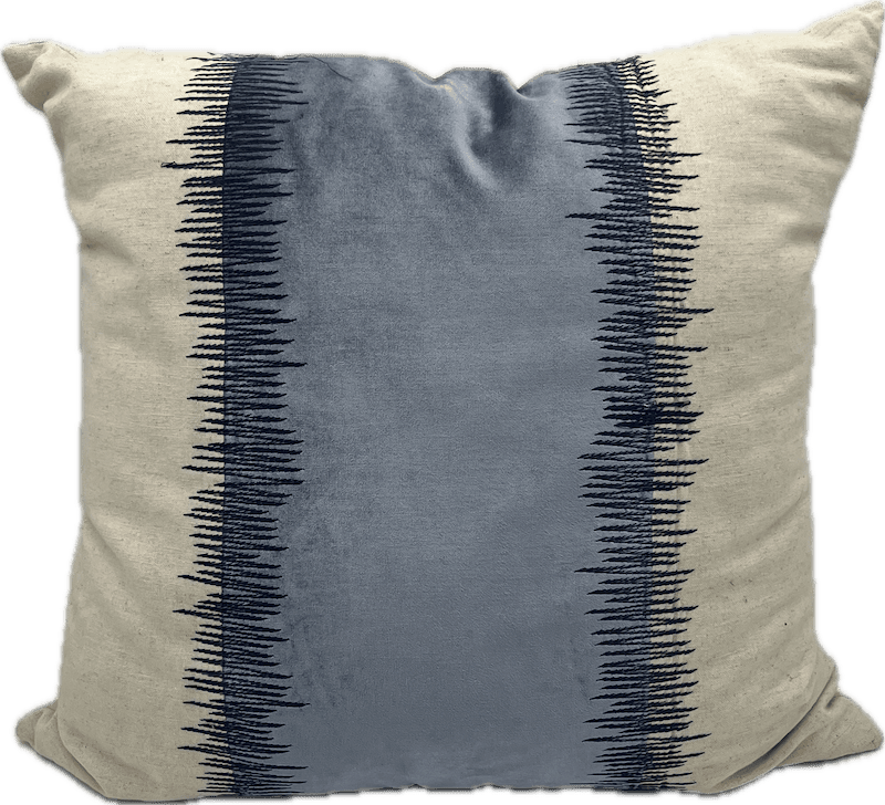 Cream pillow with blue colorblocked stripe in center, accented by navy stitching.