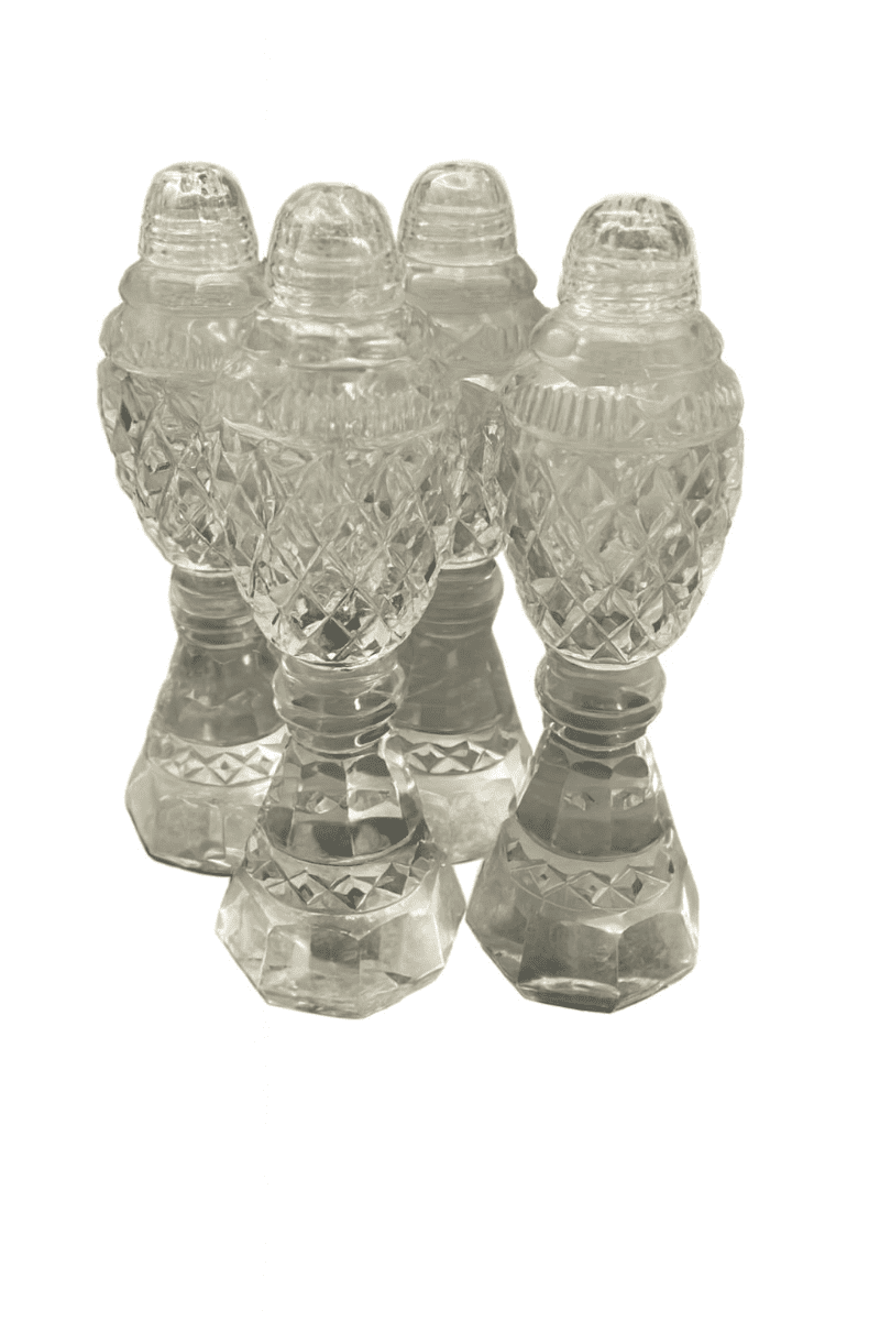 Set of vintage crystal salt and pepper shakers from Czechia.
