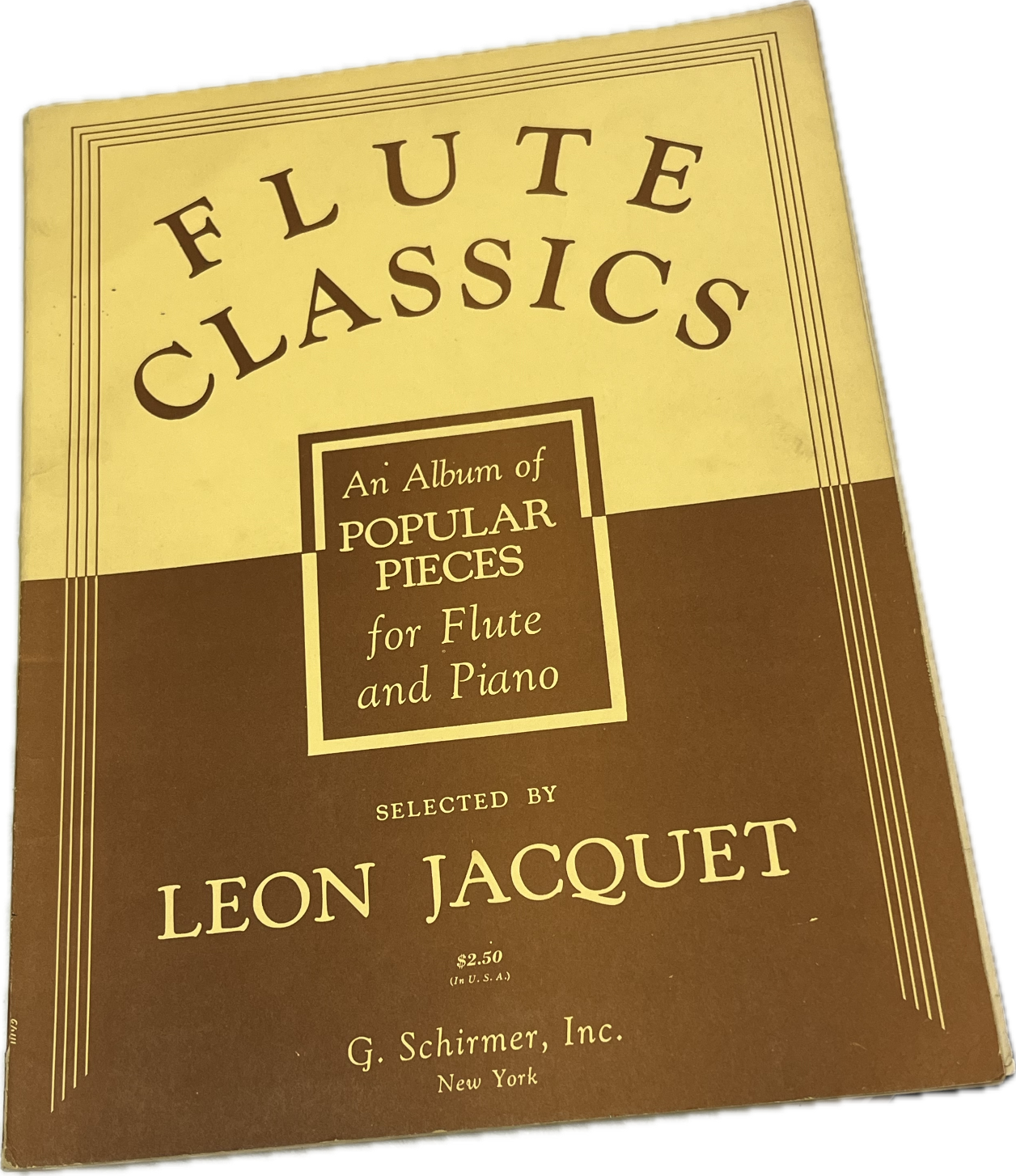 Leon Jacquet’s “Flute Classics” song booklet with 17 popular pieces for flute and piano. Originally published 1890.