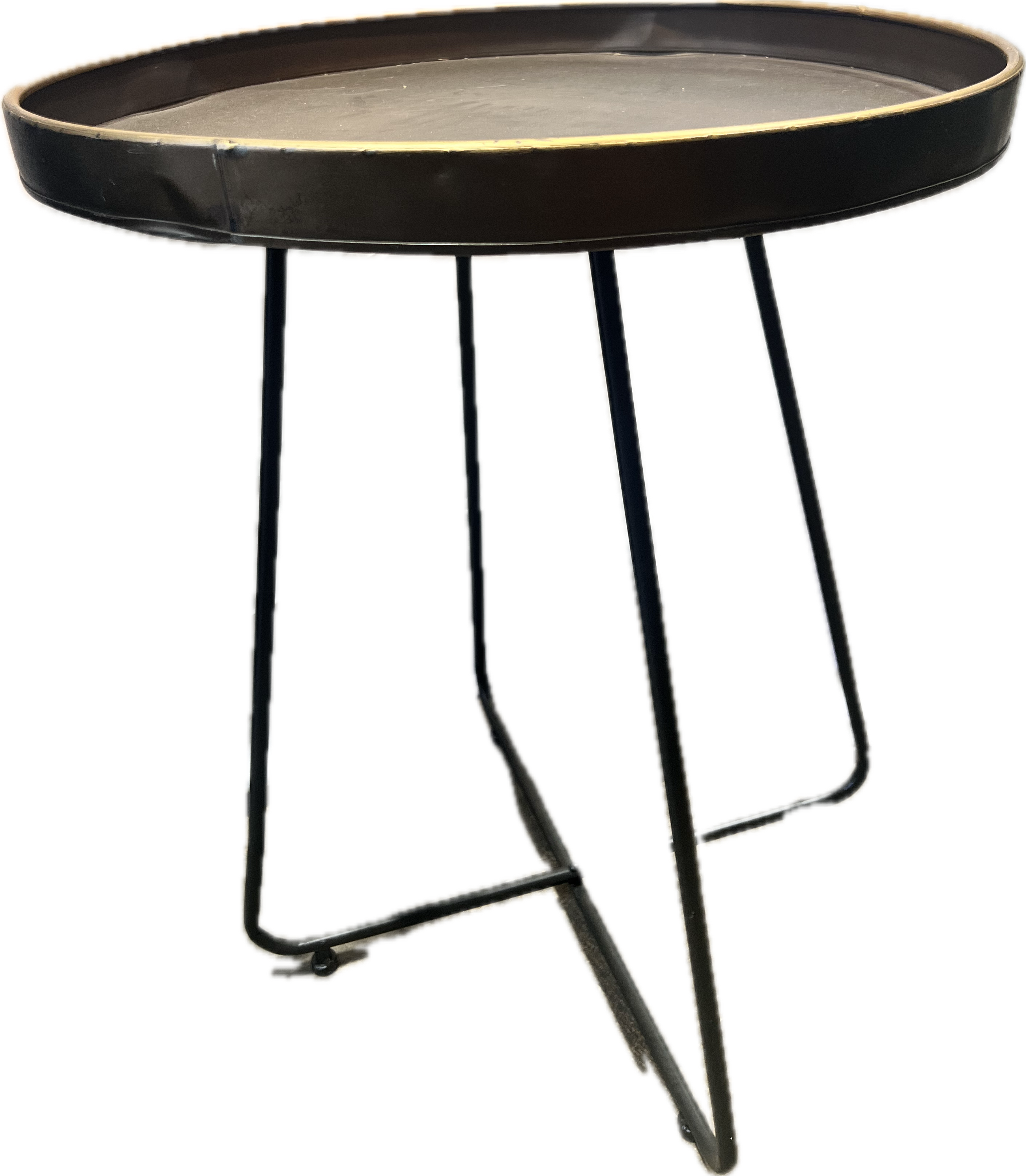 Black occasional table with gold outlines.