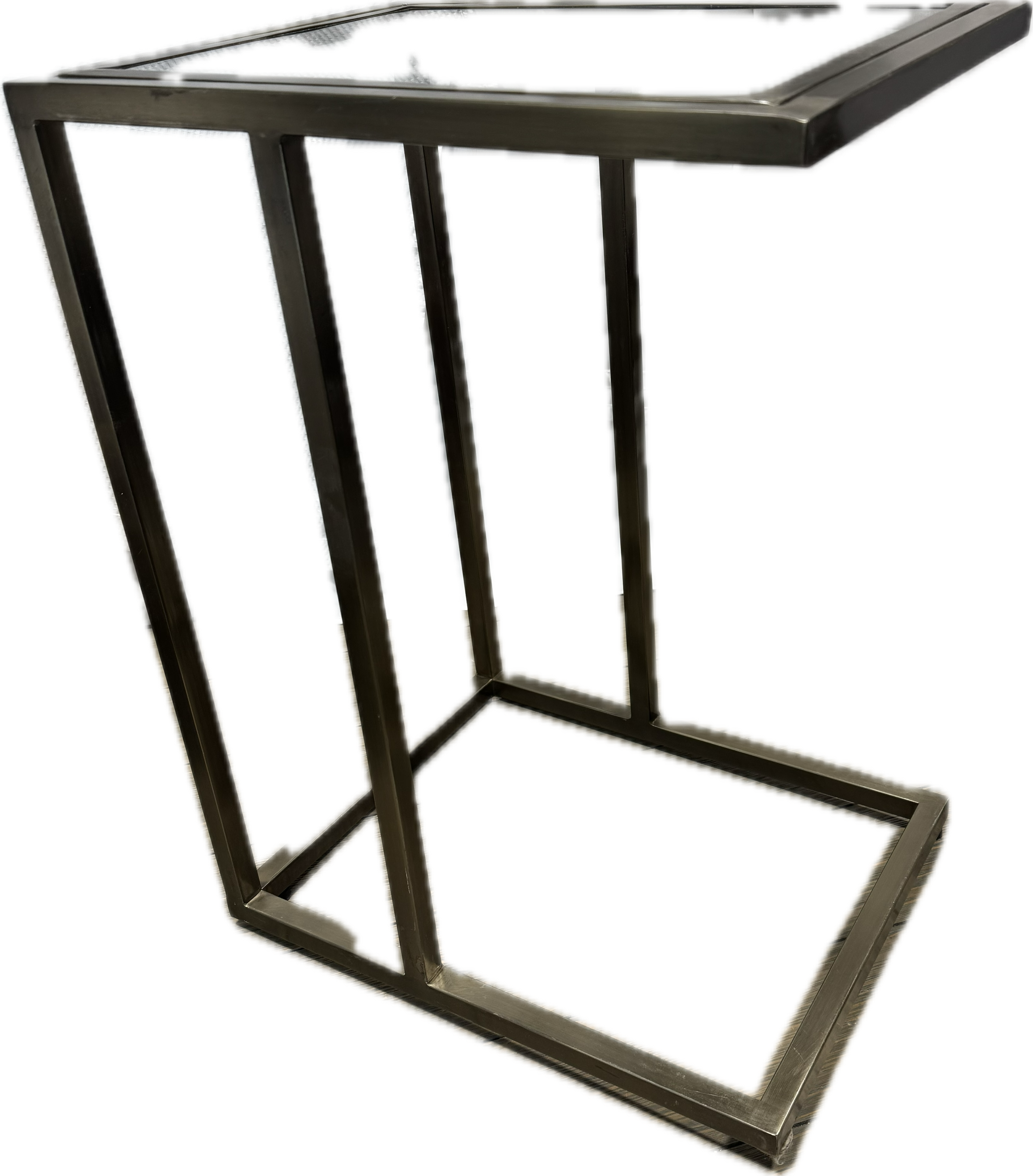 Rectangular gold cantilever table with glass top.