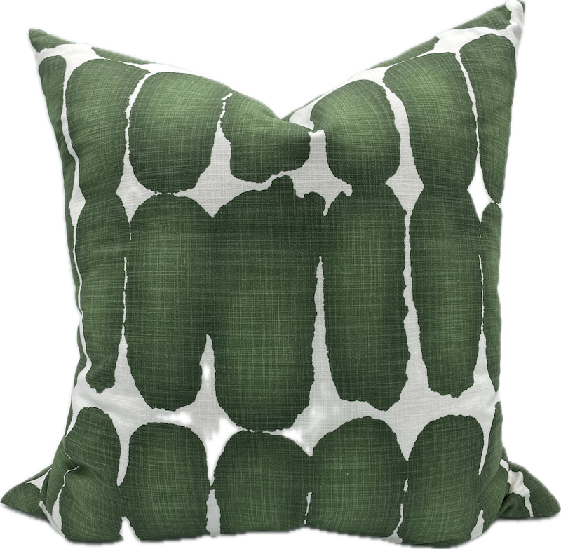 Square pillow with green abstract design.