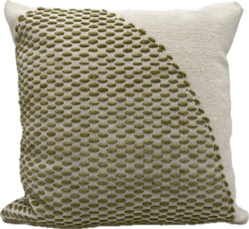 Square pillow with moss green stitch design.