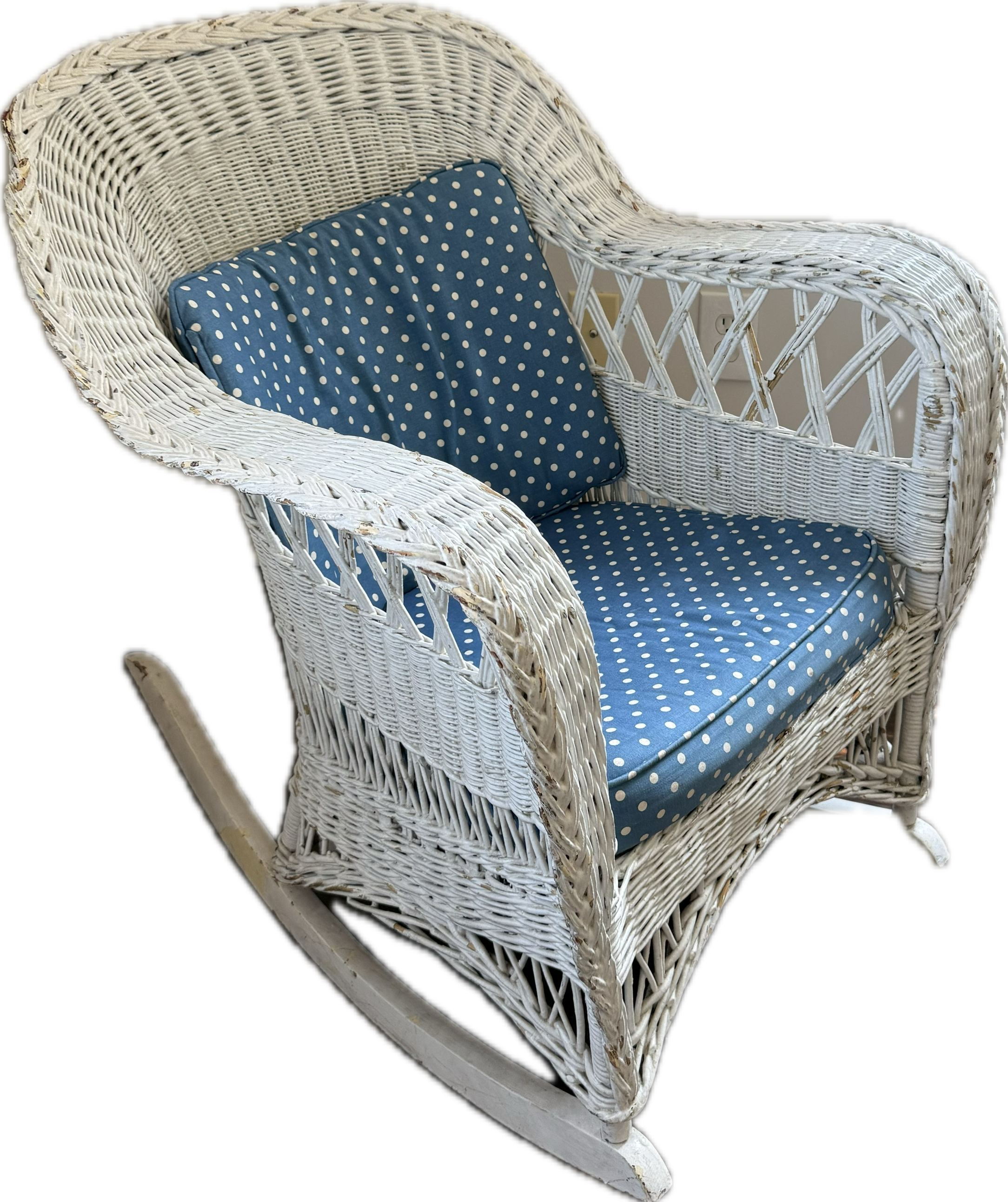 Vintage full sized white wicker rocking chair