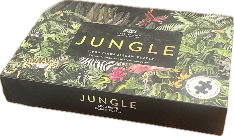 1000 piece jungle puzzle in box.