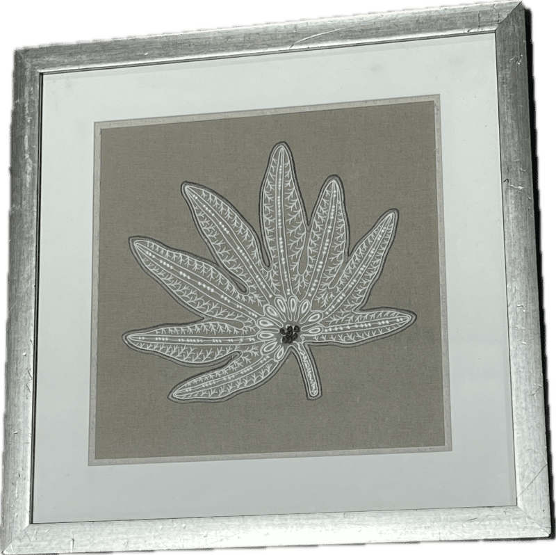 Silver framed taupe linen leaf