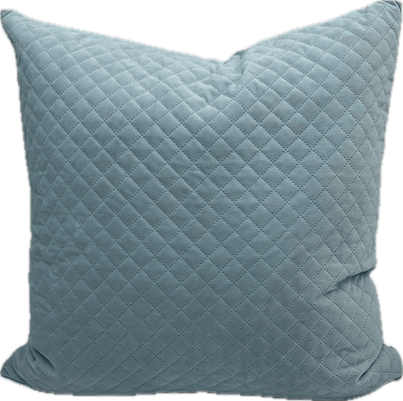 A plush, quilted velvet pillow in a soft sky-blue hue.