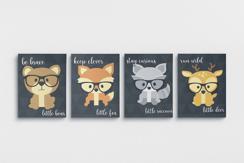 Black and grey checkered canvas with graphic of a cartoon animals wearing glasses with cursive quote.