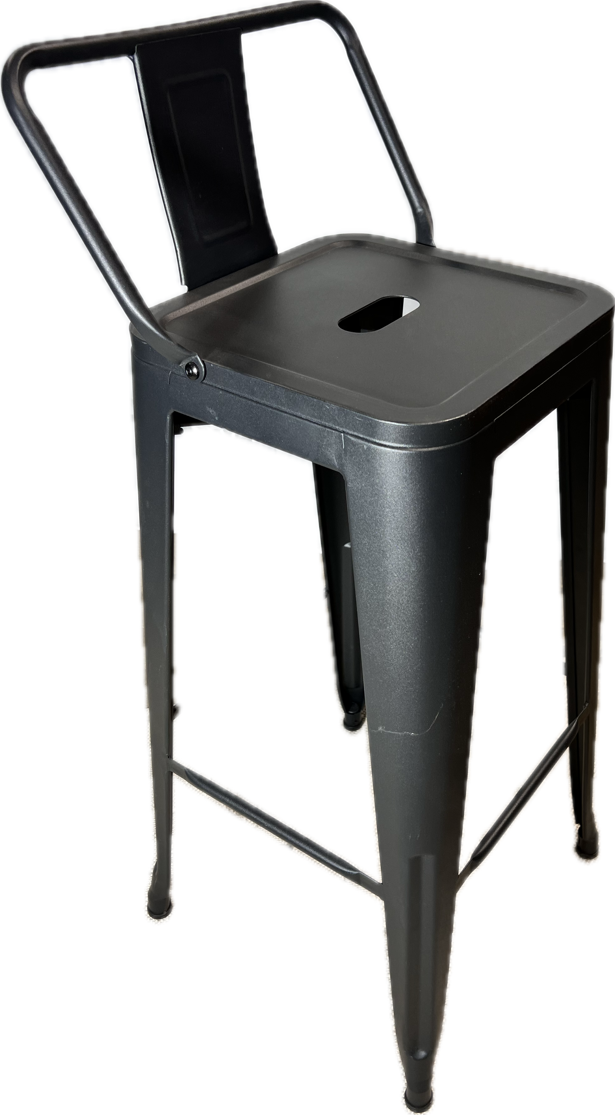 Low back gunmetal bar stool.