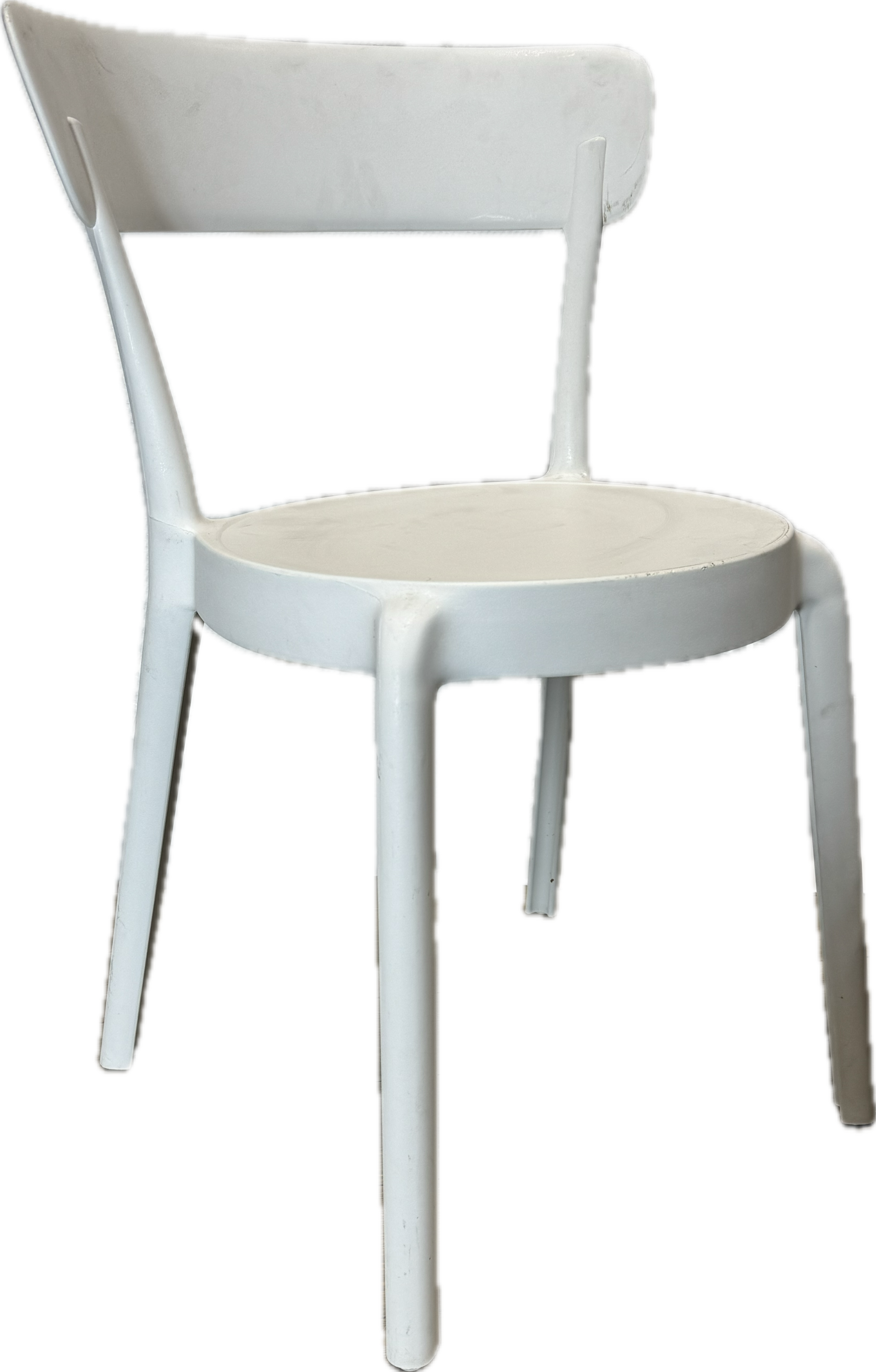 White modern indoor-outdoor molded chair, has matching white molded table.
