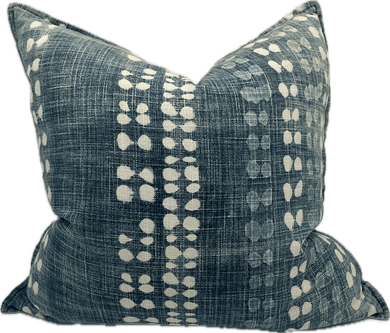 Square decorative pillow in a soft indigo-dyed cotton featuring a traditional Shibori-inspired pattern.