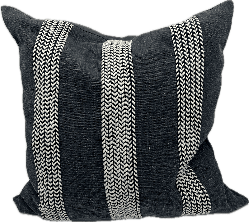 A sophisticated navy pillow featuring wide cream woven stripes with a subtle herringbone texture.
