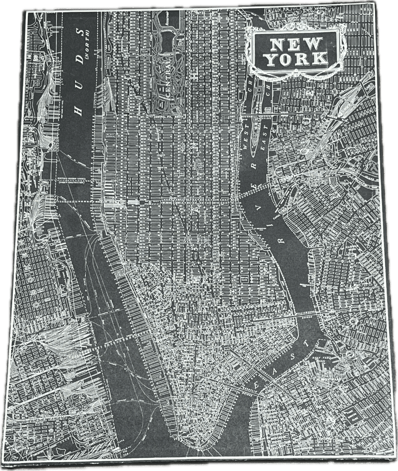 Black and white map of New York.