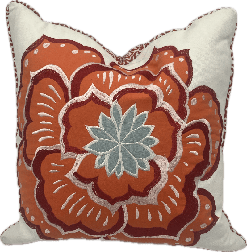 Large embroidered orange flower pillow. Abigail by Levtex Home.