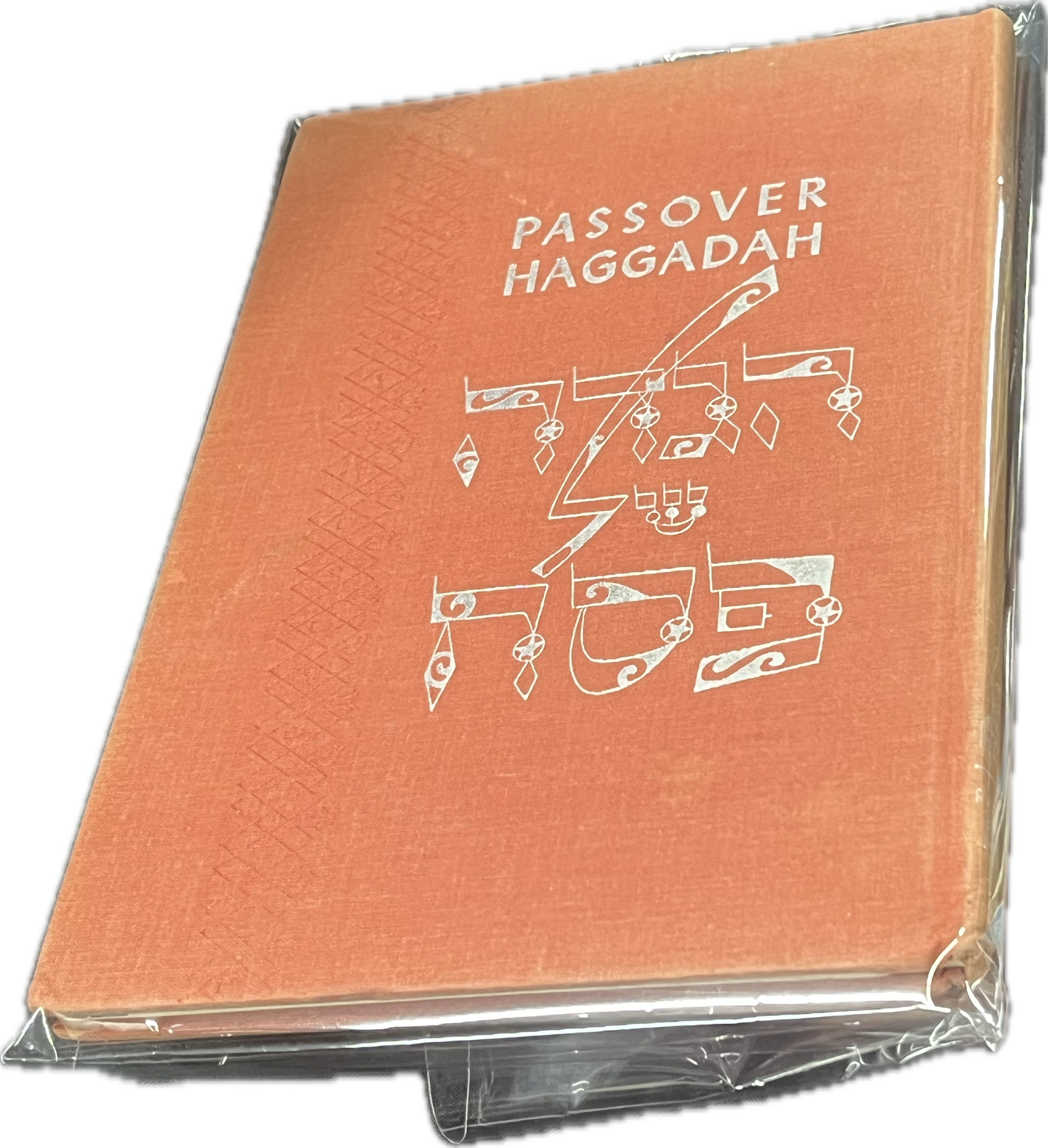 Red Passover Haggadah book with silver text in English and Hebrew, Copyright 1959 published by Prayer Book Press.