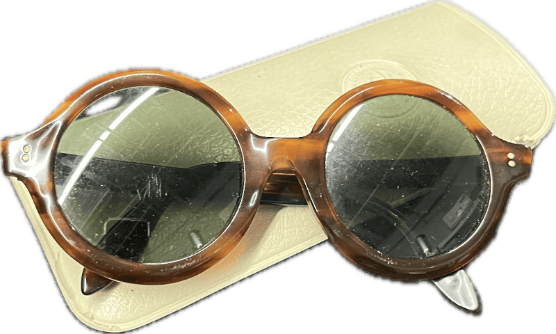 Tortoiseshell round glasses in white case, likely from 1960’s.