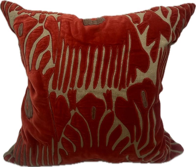 Raised velvet rust colored pillow with abstract art nouveau design.