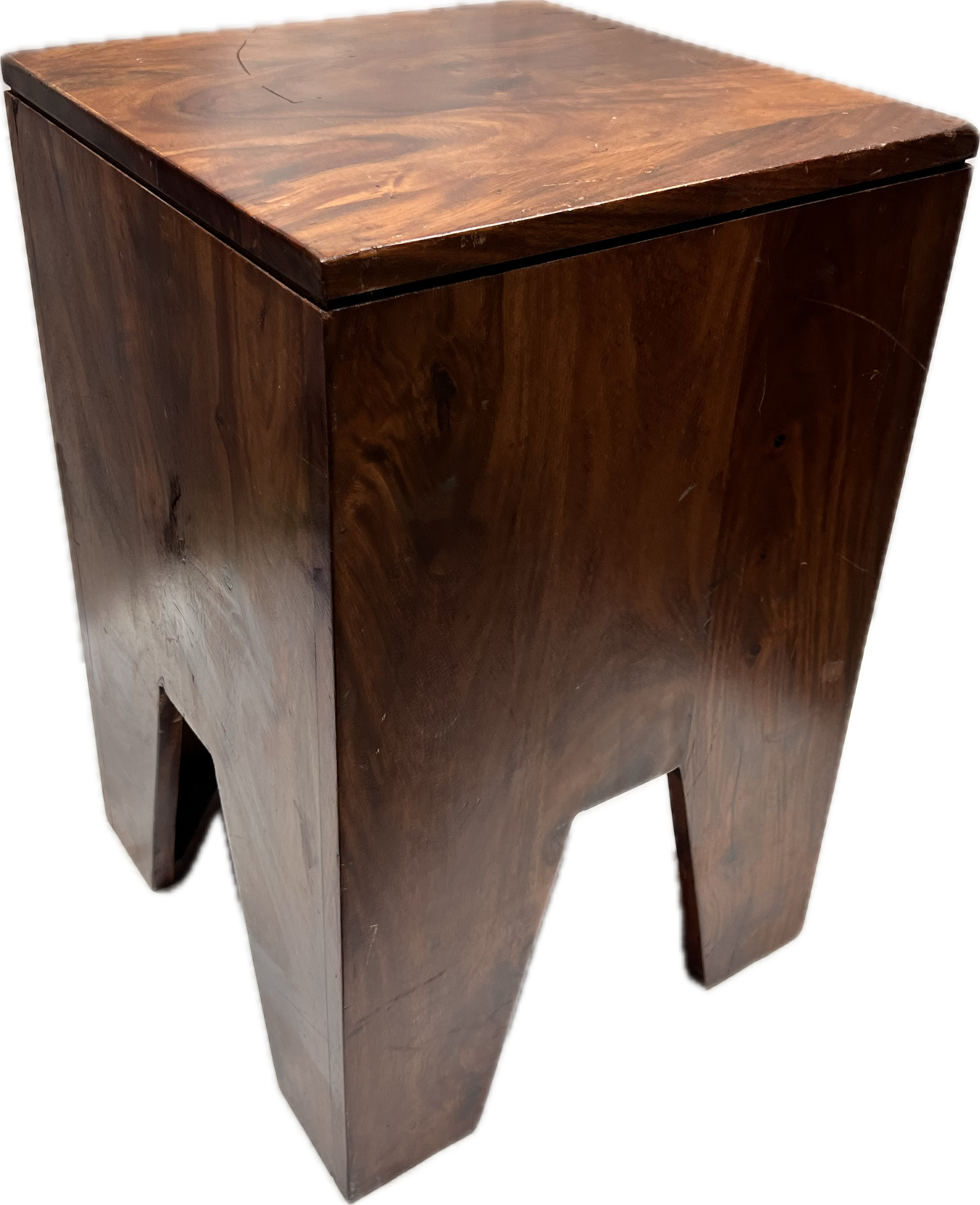 Dark wood side table with square block design.