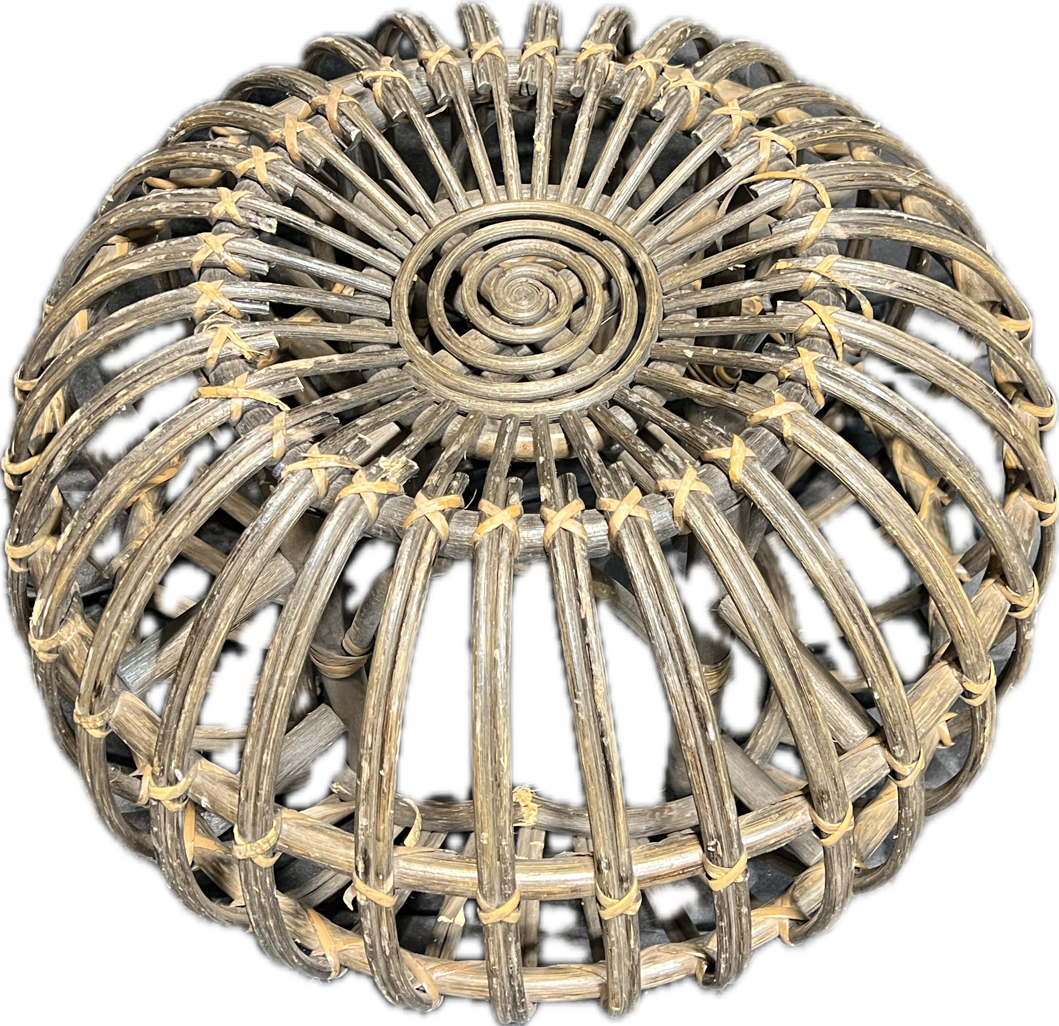 Globe shaped bamboo dark brown side table.