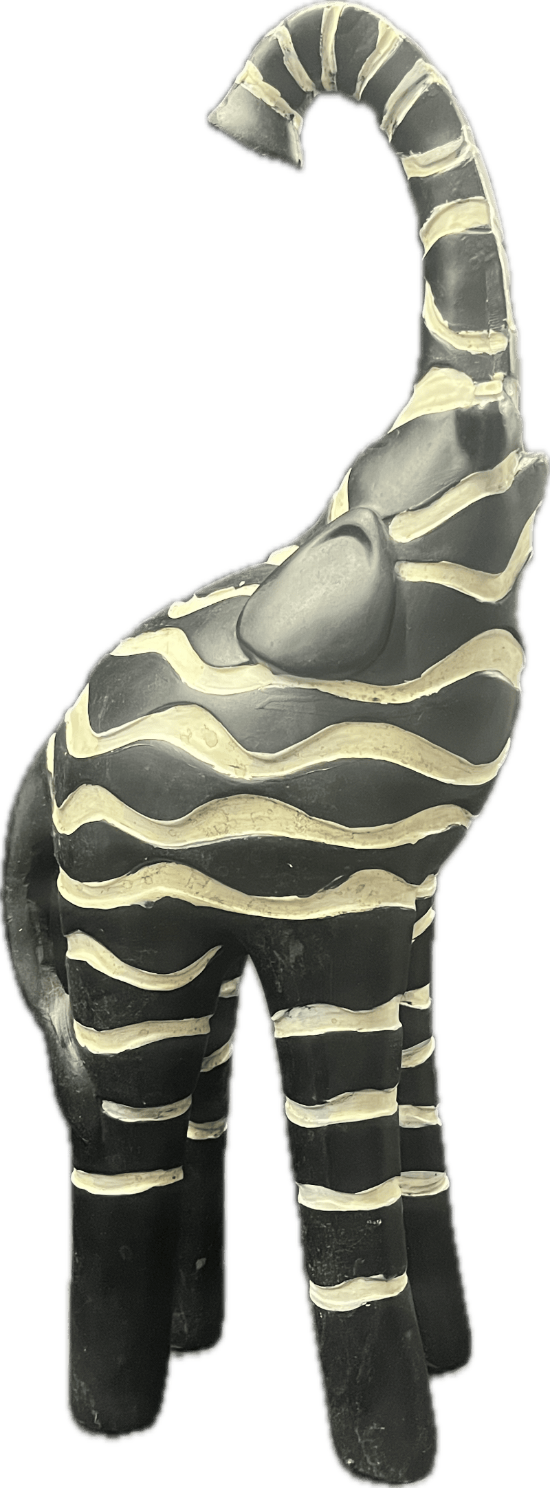 Black and white striped elephant statue.