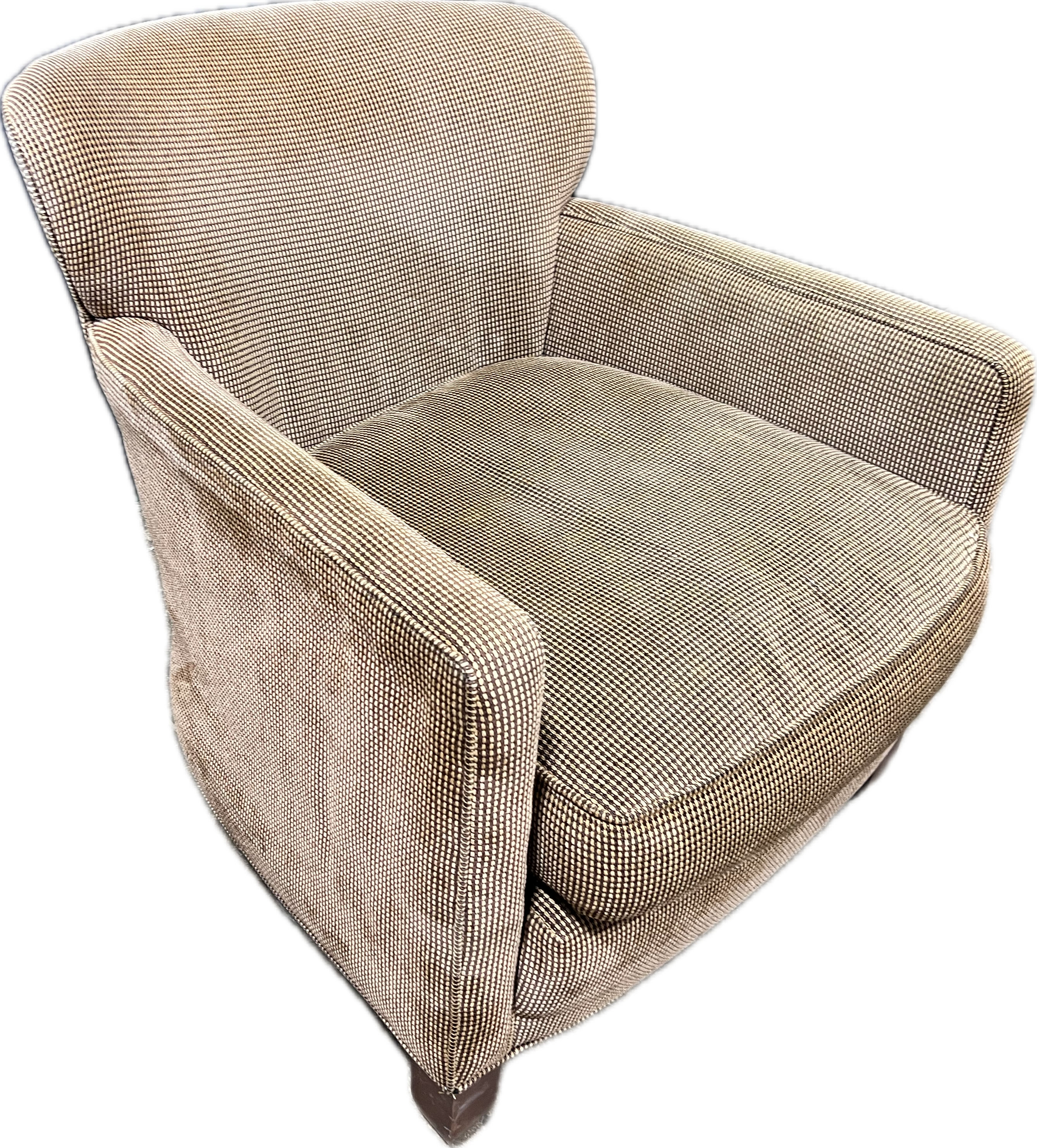 Small print houndstooth in black and beige chenille accent chair.