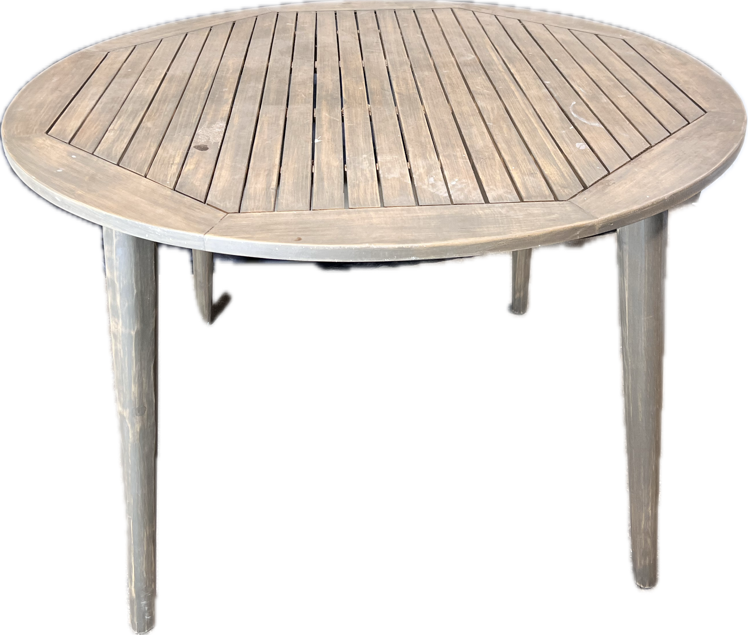 Round wood outdoor teak table.
