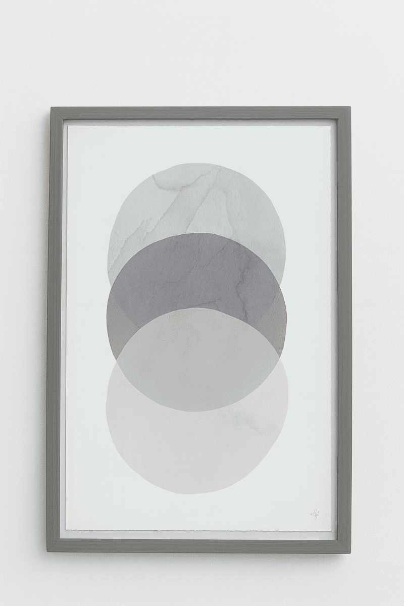 Prints of 3 overlapping circles in greyscale.
