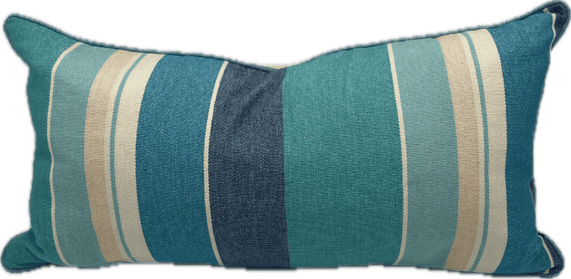 Bright aqua and white striped rectangular lumbar pillow, made by Tommy Hilfiger.