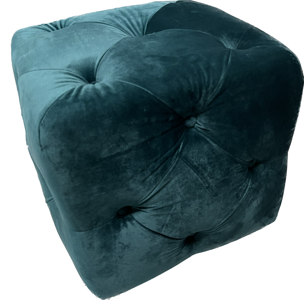 Turquoise velvet tufted square ottoman