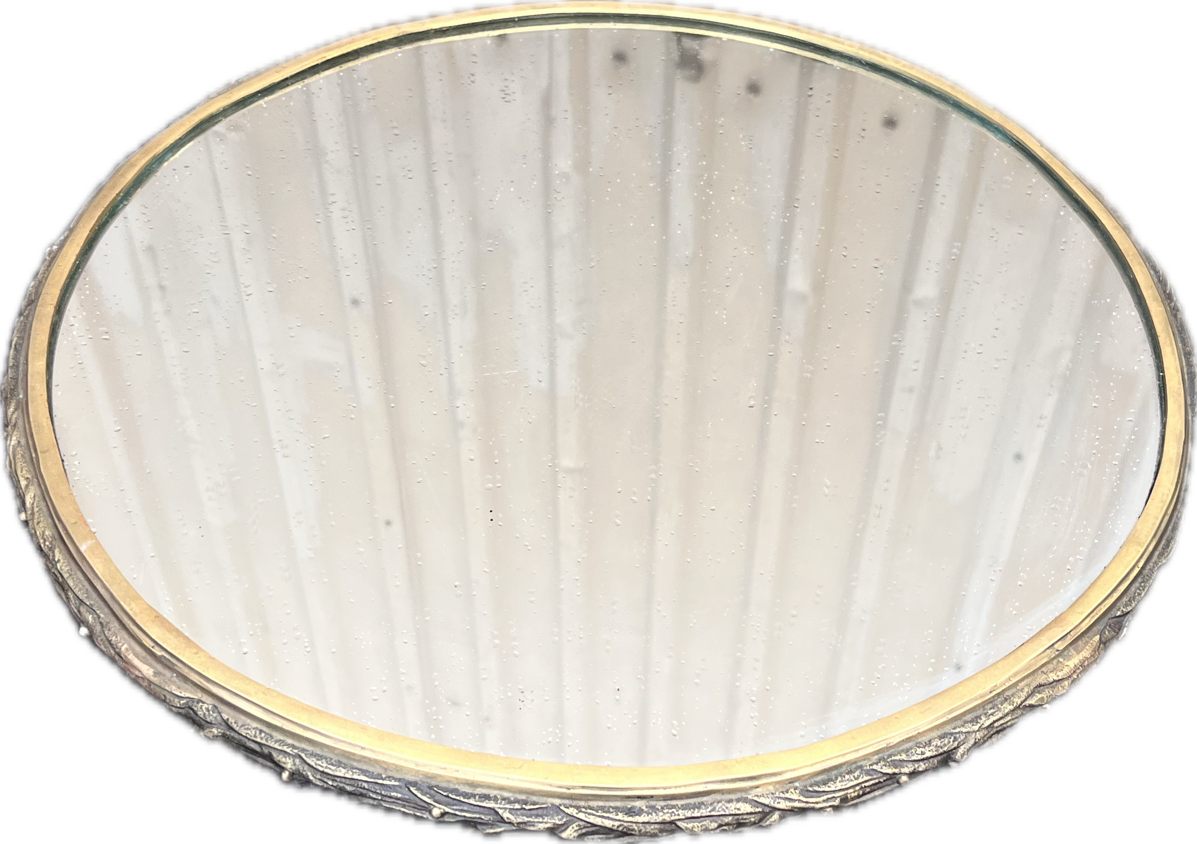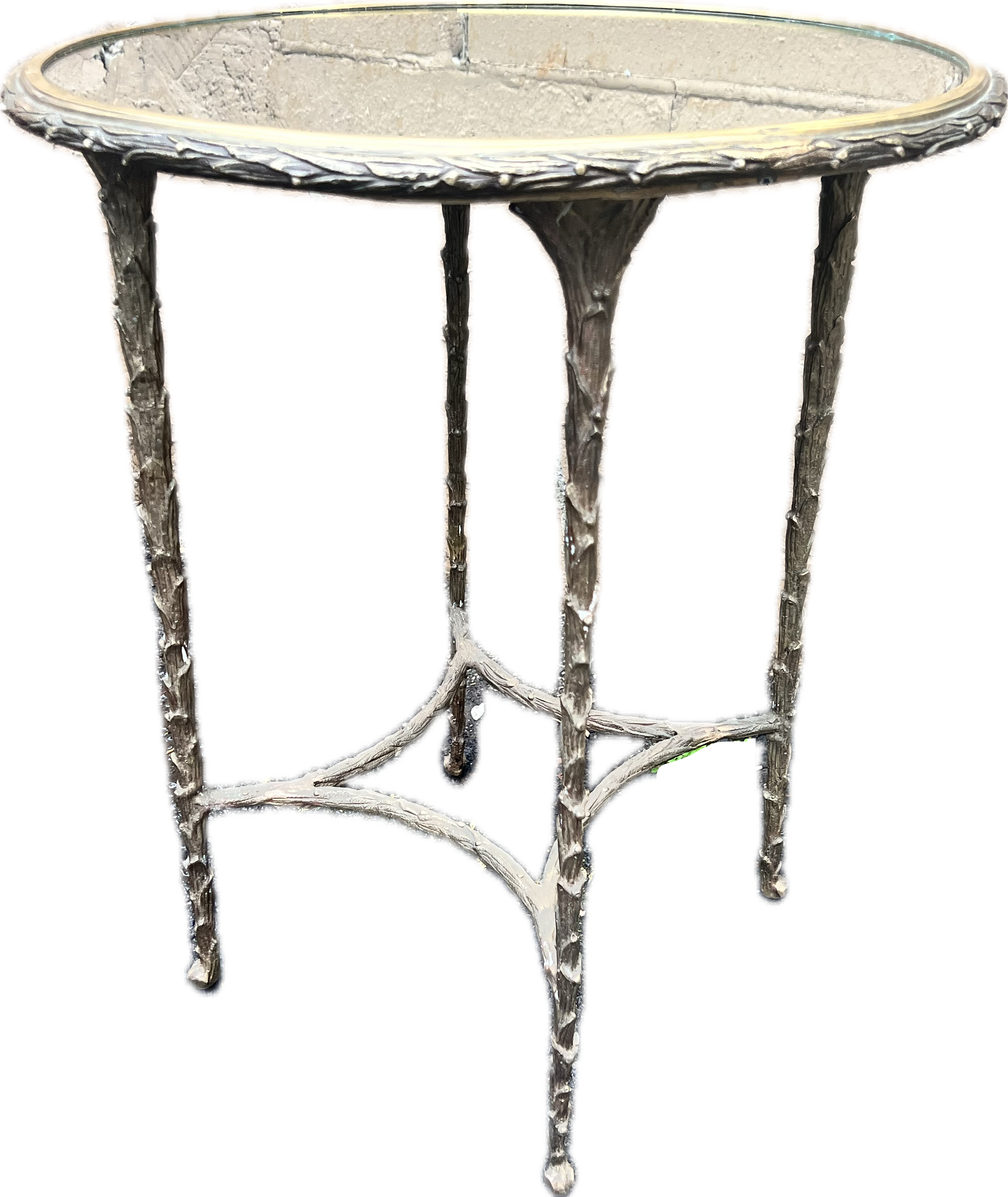 Gold twisted metal side table with mirrored top.