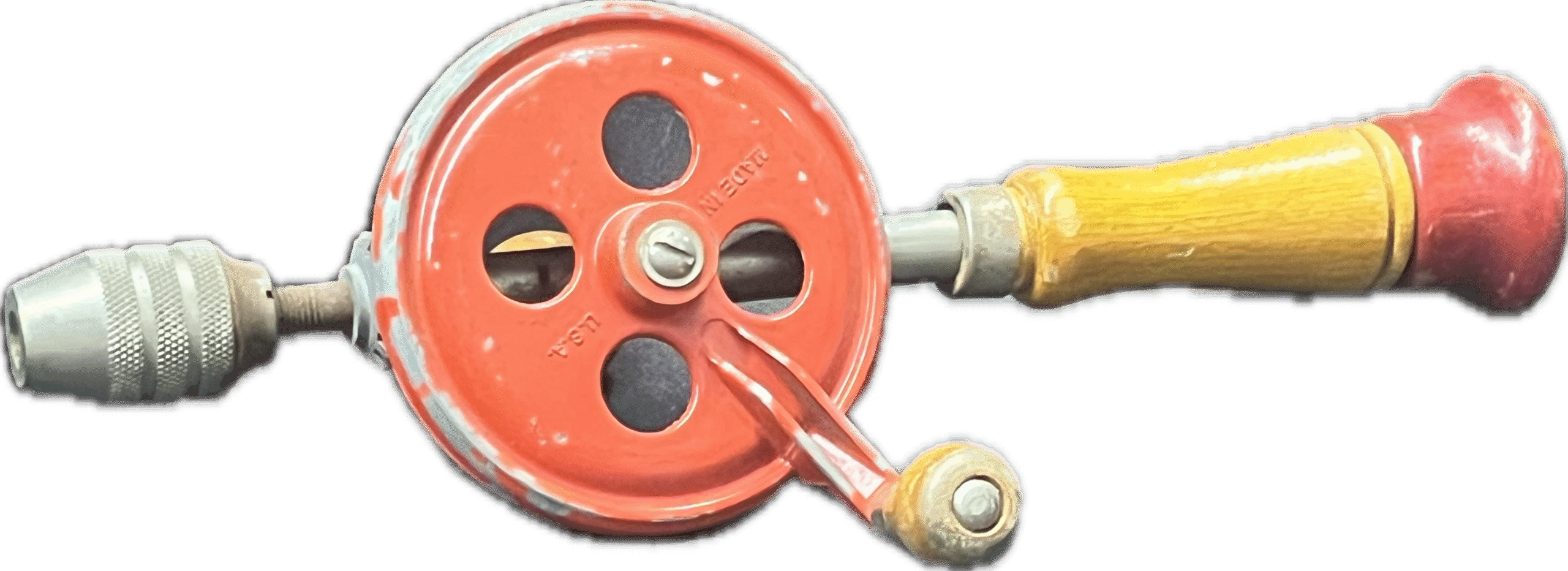 Vintage hand crank red painted eggbeater style hand drill from 1960’s.