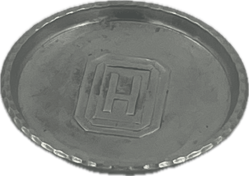 Vintage hand forged aluminum coaster with the initial H, Mid-century modern.