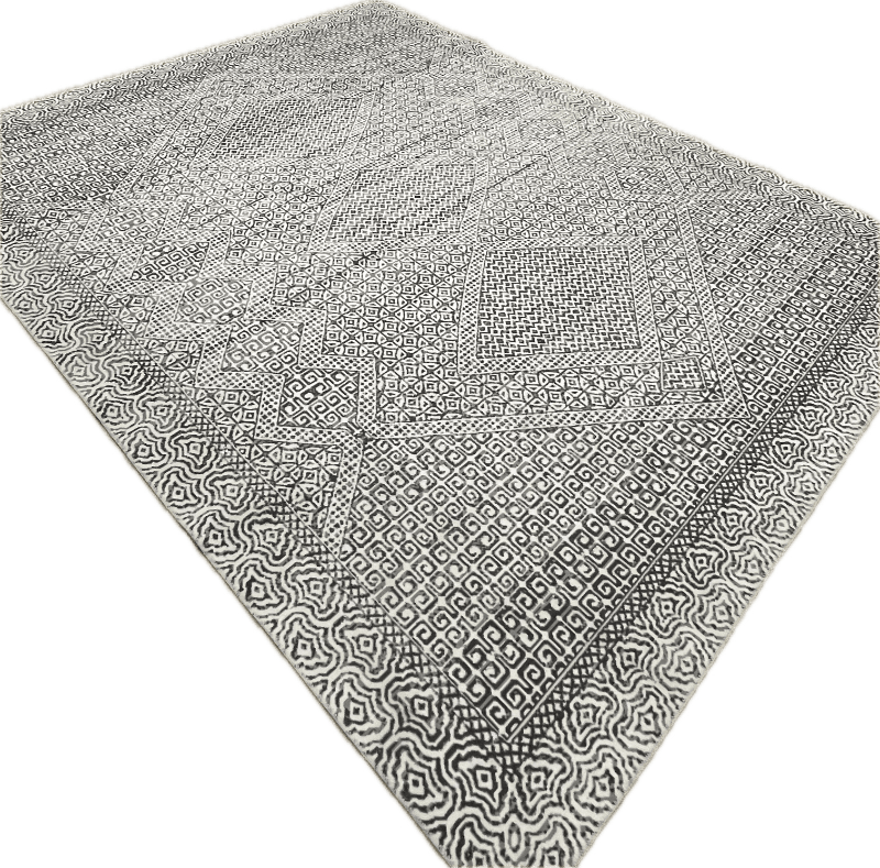 Black and white patterned rug.