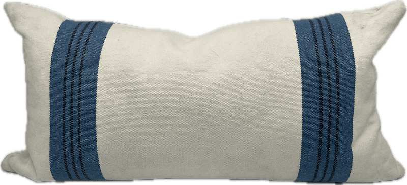 Rectangular lumbar pillow with a clean, simple design featuring two denim-blue vertical stripes on a soft cream background.