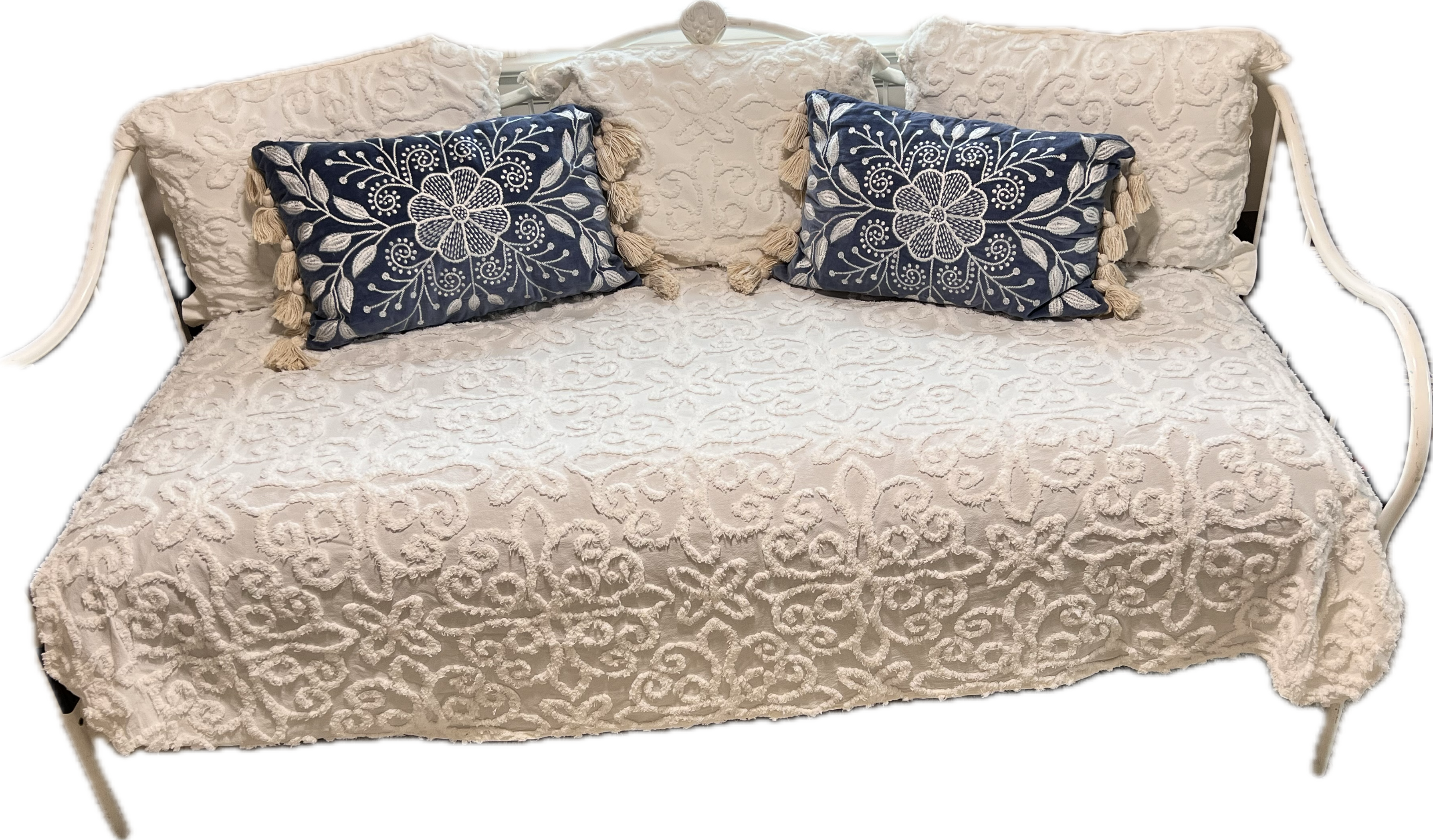 Traditional style white metal daybed.