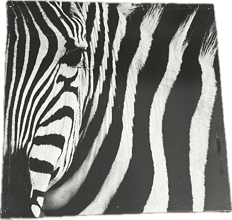 Zebra photograph on square canvas.